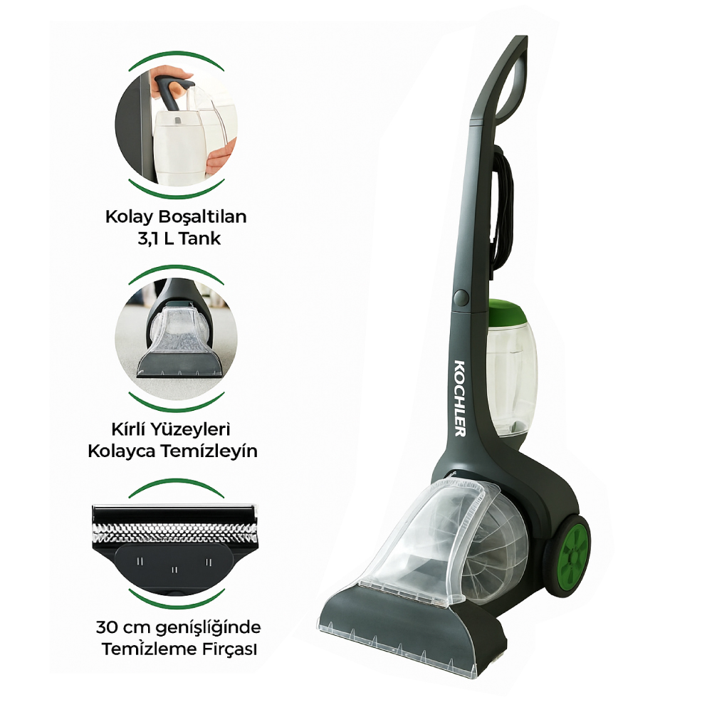 Kochler VC9390; hem pratik kullanımı hem de yüksek performansı ile halı temizliğinde zamandan ve enerjiden tasarruf etmenizi sağlar. Kimyasal kullanmadan etkili temizlik sunar, evde hijyen standartlarınızı üst seviyeye çıkarır.