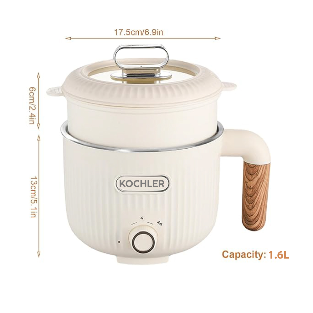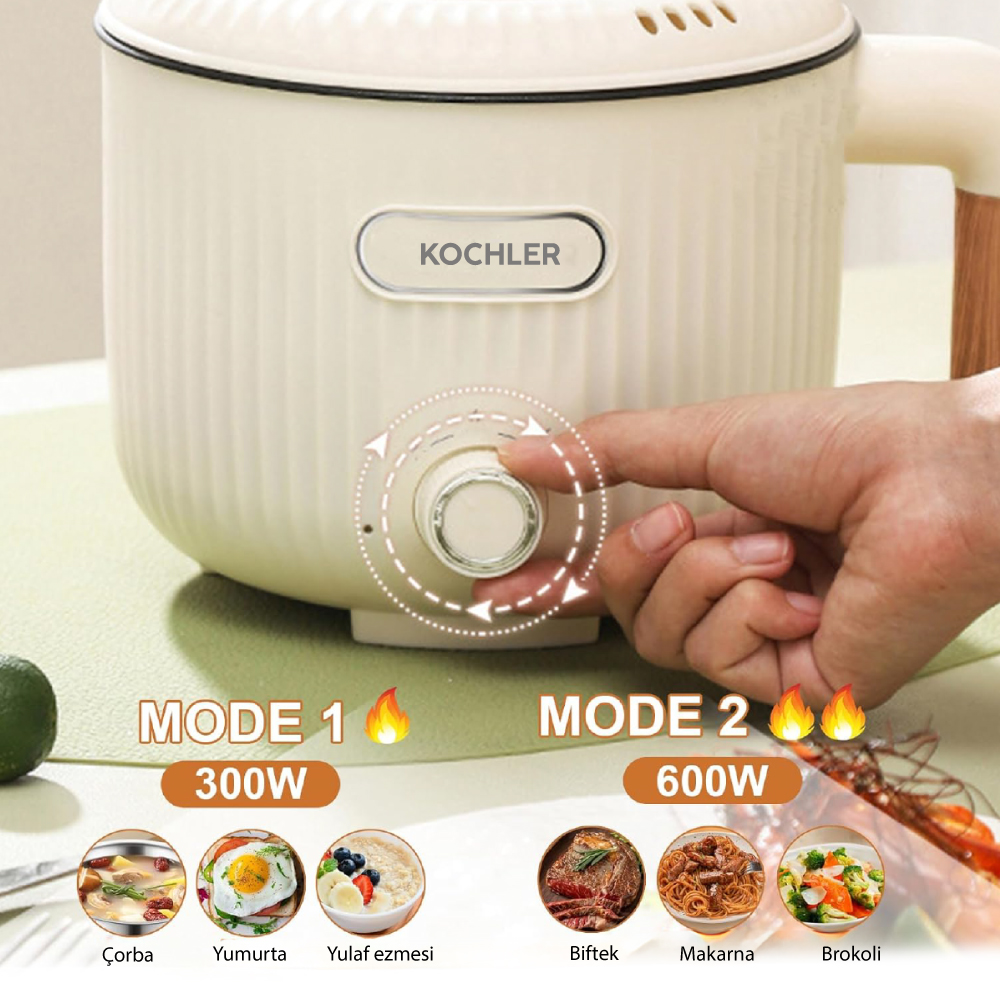 Kochler JJ-18B Elektrikli Tencere, kompakt tasarımı 🏠 ve çok yönlü kullanım özellikleriyle küçük mutfaklar, yurtlar 🎓, ofisler 💼 ve kamp ortamları ⛺ için ideal bir yardımcıdır. ⚡ 600W gücündeki motoruyla hızlıca ısınır ⏱️, 1.6 litrelik kapasitesi sayesinde çorba 🍲, makarna 🍝, sebze 🥦 ve daha birçok tarifi kolayca hazırlamanıza imkan tanır. Hem klasik hem de buharlı pişirme 🌫️ desteği ile sağlıklı ve pratik bir yemek deneyimi sunar.