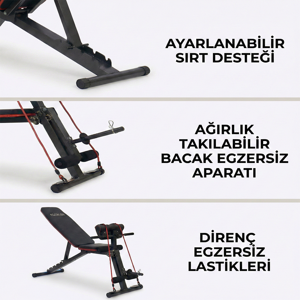 Çok Fonksiyonlu Egzersiz Sehpası Direnç Lastikli Katlanabilir Bench Sehpası