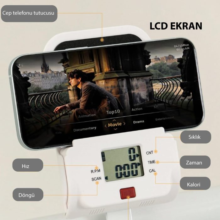 📊 LCD ekran ile takip – Kalori, süre, mesafe ve adım sayınızı anlık olarak görebilirsiniz.
