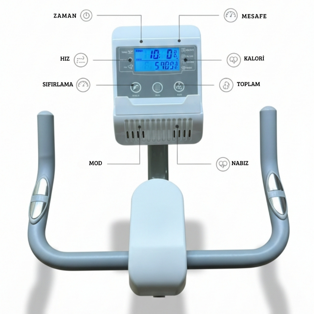 Manyetik Kondisyon Bisikleti – 4 Kg Volan, 120 Kg Kapasite, Uygulamalı, 9 Kademe Direnç, Nabız Ölçer