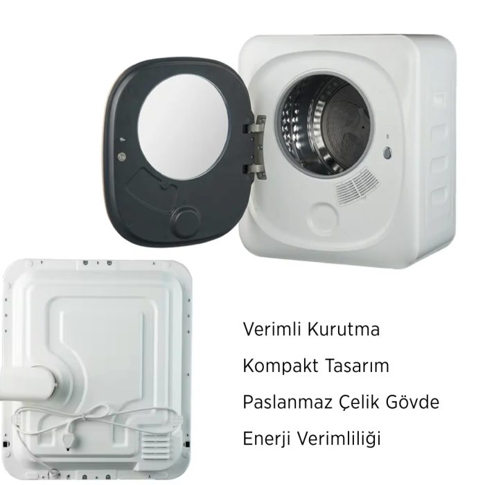 Mini Kurutucu ile dar alanlarda bile yüksek performanslı kurutma deneyimi yaşayın! Kompakt yapısıyla ev, karavan, öğrenci yurdu veya tiny house gibi küçük yaşam alanları için idealdir. 4 kg kapasite, 800W düşük güç tüketimi ve otomatik sıcaklık kontrolü sayesinde giysilerinizi nazikçe kurutur ve korur.