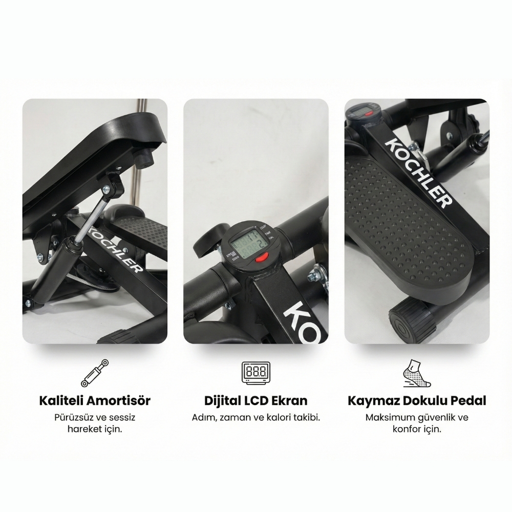 ⭐ KOCHLER Kollu Dirençli Stepper – Çelik Şase, Ayarlanabilir Direnç, Dijital Ekran, Üst + Alt Vücut Antrenmanı