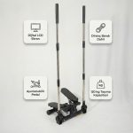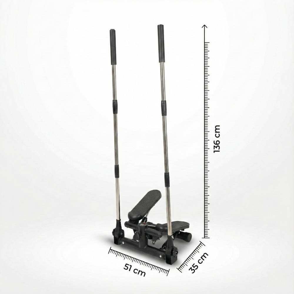 Ürünün öne çıkan özellikleri: 2 adet hareket kolu, 2 adet 1 metre direnç ipi, ayarlanabilir pedal yapısı, 20 cm adım yüksekliği ve sessiz çalışma sistemiyle tam vücut aktivasyonu sağlayan profesyonel bir ev spor aletidir.